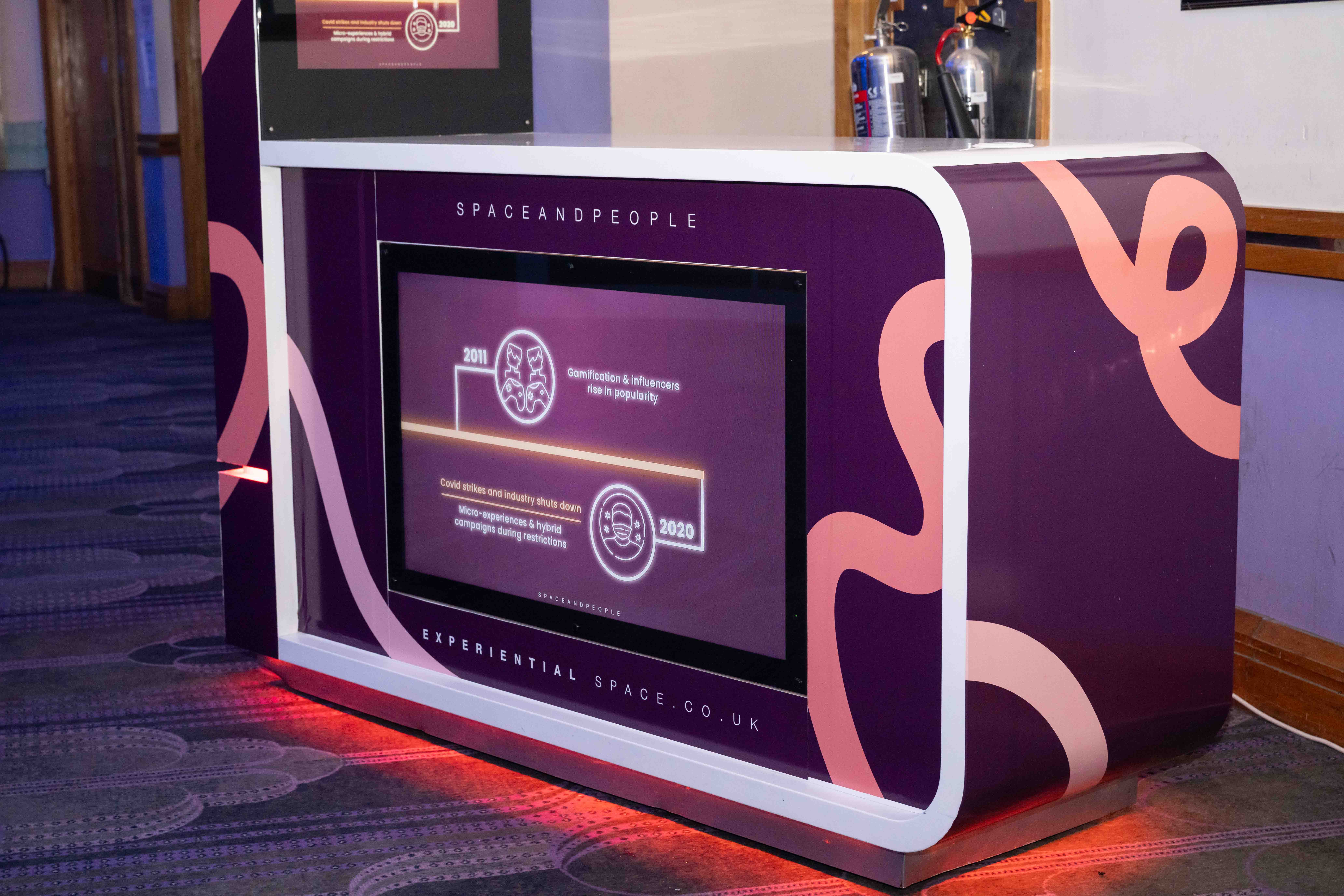 FMBE brings elements for FMBE campaigns into the room, starting just inside the door with our table plans displayed on the ready to go sampling units that belong to lead sponsor SpaceandPeople. There’s more on SpaceandPeople below.